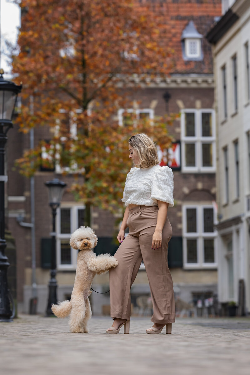 Het is geen probleem wanneer je hond niet los kan. Je kunt ervoor kiezen om gebruik te maken van mijn fotografielijn die ik in de nabewerking wegwerk. Vind je het fijner om de hond aan eigen halsband en riem vast te houden, dan mag dat uiteraard ook. Wel zal het zichtbaar zijn op het eindresultaat.